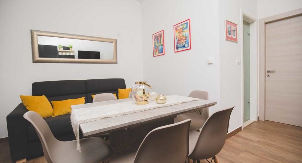 Moderno opremljen apartman sa dizajnerskom rasvjetom i najnovijom tehničkom opremom. Apartman je smješten 15 minute hoda od trajektne luke i 3 minute od plaže.